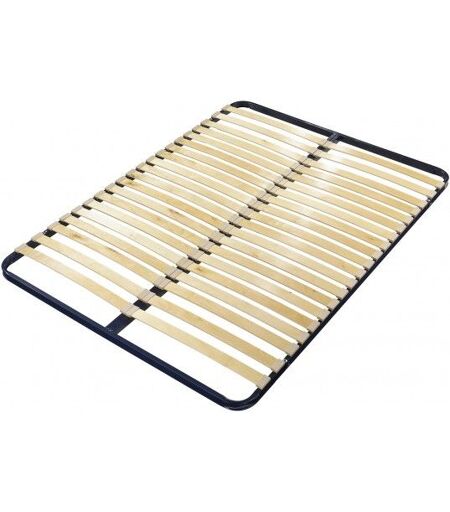 STRUCTURE STRUCTURE METALLIQUE en tube 40x30 mm, laquée au four, coins arrondis renforcés SUSPENSION SUSPENSION composée de 20 lattes multiplis vernies (largeur 53 mm) insérées dans des embouts polyéthylène de protection et dinsonorisation Double traverse centrale soudée en dimension double couchage EMBALLAGE Emballé individuellement sous housse polyéthylène thermo-rétractable, renforcée par des coins dangle PIEDS EN OPTION PIEDS POUR SIMPLE COUCHAGE : un jeu de 4 pieds cylindriques assortis hauteur 22 cm avec vis + clé 6 pans (réf. : n°53-4PIEDS) PIEDS POUR DOUBLE COUCHAGE (réf. : n°535-5PIEDS) : un jeu de 4 pieds cylindriques assortis hauteur 22 cm (avec vis + clé 6 pans) + 1 pied de soutien central réglable de 20 à 24 cm ...