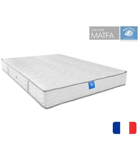 - Technologie : Suspension ressorts biconiques (336 pour la dimension 140x190cm)- Ceinture de mousse stabilisatrice- Hauteur totale : 21cm- Double face de couchage : oui- Garnissage : 1700g/m2 constitué de feutre et de coton.- Face hiver : laine 250g/m2 + ouate 150g/m2+ nappe polyester 15mm.- Face été : ouate 150g/m2 + mousse de confort 8mm.- 2 aérateurs- Poignée(s) : 4- Composition coutil : stretch 100% polyester- Fabriqué en France- Produit certifié Belle literie par Sardem. ...