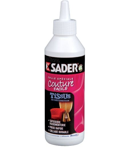 Colle tissu de décoration Sader - Biberon 250 ml Issue de la technologie Texticroche, idéale pour tous vos travaux de tapisserie et passementerie : capitonnages de fauteuils, galons sur clous tapissiers, double rideaux, décoration de textiles A base de latex naturel, elle s'utilise sur tous vos textiles épais (toile, coton, chanvre, jute, cuir ) Vous pouvez aussi l'utiliser pour vos sacs, vos toiles de tente, vos bâches ou comme antidérapant de tapis sur certains sols lisses Reste souple après séchage Résiste aux lavages Sans solvant Marque : Sader Référence fournisseur : 30242291 Type de produit : Colle tissu de décoration Emission dans l'air intérieur : A+ Contenance : Biberon 250 ml Conseils d'utilisation : Porter des lunettes de sécurité à écrans latéraux ou des lunettes étanches. Éviter le contact avec les yeux. Porter des gants de protection et des vêtements de protection. Avertissement : Tenir hors de portée des enfants, Dangereux. Respecter les précautions d'emploi ...