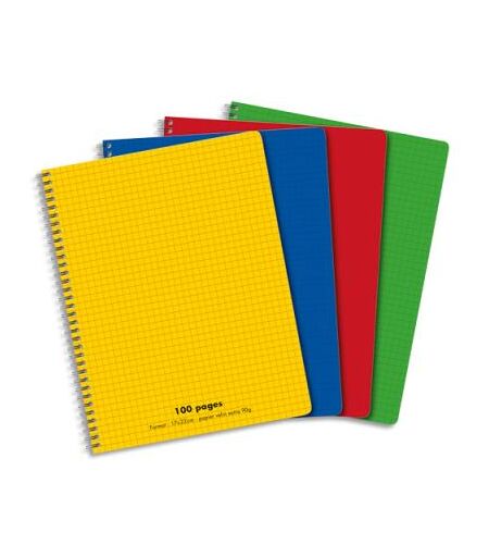 Produit neutre Cahier éco - spirales - couverture polypro - 100 pages - 17 x 22 cm - petits carreaux - coloris assortis
