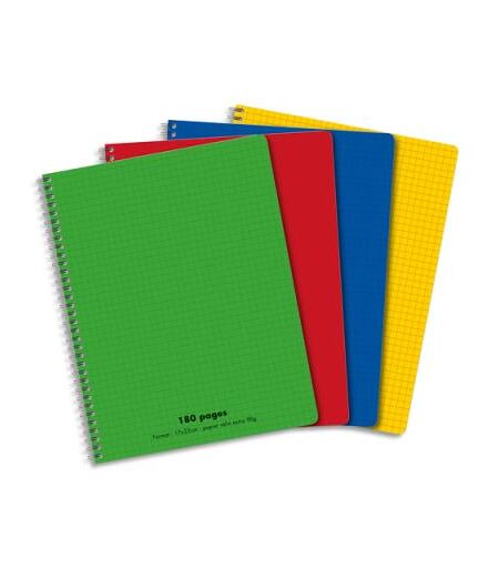 Cahier économique reliure spirale Polypro 5/10° Réglure 5 x 5 Coloris assortis. 180 pages Format 17 x 22 cm ...