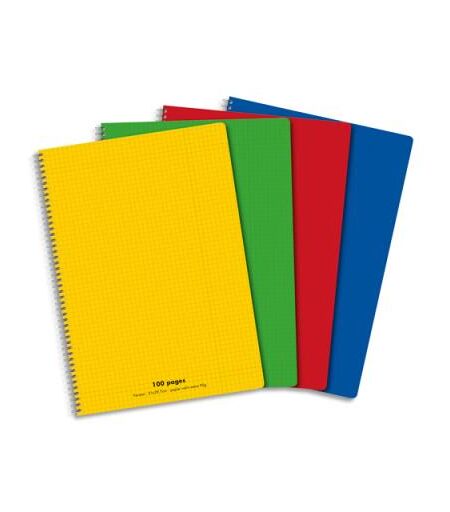 Produit neutre Cahier éco - spirales - couverture polypro - 100 pages - 21 x 29,7 cm - petits carreaux - assortis