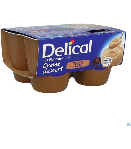 Complément alimentaire à utiliser dans le cadre d’une alimentation variée, équilibrée et d’un mode de vie sain.Delical La Floridine HP HC est une crème dessert stérilisée UHT, prête à l’emploi, spécialement formulée pour les patients souffrant de dénutrition ou à risque. Enrichie en protéines (10 g/100 ml) et en énergie (180 kcal/100 ml), elle est adaptée aux troubles de la mastication et de la déglutition (texture IDDSI 3). Saveur : café. Sans gluten et cliniquement sans lactose. Fabriqué en France.IngrédientsLAIT entier (32 %), eau, protéines de LAIT, sucre, huile de colza, crème (LAIT), maltodextrine, amidon modifié de maïs, arôme, colorant : caramel ordinaire, correcteur d’acidité (E524), vitamines (C, E, A, B5, PP, D3, B2, K1, B6, B1, B12, B9, B8), épaississant (E407), émulsifiant (E471).Allergènes : Lait.Valeurs nutritionnelles Pour 100 ml Énergie754 kJ / 180 kcal Matières grasses8,0 g dont acides gras saturés2,6 g Glucides16,0 g dont sucres13,2 g dont lactose1,5 g Fibres alimentaires2,0 g Protéines10,0 g Sel0,1 g Vitamine A140 µg ER Vitamine D1,4 µg Vitamine E3,2 mg α-TE Vitamine K10,0 µg Vitamine C20,0 mg Vitamine B10,20 mg Vitamine B20,51 mg Vitamine B33,6 mg-NE Vitamine B51,9 mg Vitamine B60,29 mg Vitamine B810,0 µg Vitamine B940,0 µg Vitamine B120,25 µg Sodium55,0 mg Potassium180 mg Chlorure55,0 mg Calcium230 mg Phosphore170 mg Magnésium25,0 mg Fer1,1 mg Zinc1,2 mg Cuivre117 µg Manganèse120 µg Fluorure15,0 µg Sélénium5,8 µg Chrome10,0 µg Molybdène7,0 µg Iode11,0 µg Conseils d'utilisation1 à 2 pots par jour en complément de l’alimentation, ou selon avis médical. À consommer de préférence frais, en collation ou en dessert.Précautions d'emploiÀ utiliser sous contrôle médical. Ne convient pas aux enfants de moins de 3 ans. Ne peut être utilisé comme seule source d’alimentation. Conserver à température ambiante (15–25 °C). Après ouverture, consommer dans les 24 h et conserver au réfrigérateur. Adapter la prescription en cas d’insuffisance rénale, hépatique ou d’usage pédiatrique. Texture IDDSI niveau 3.Poids net4 x 200 g = 800 gAdresse du FabricantDelical – Lactalis Nutrition SantéZI de Torcé35370 Torcé – France ...
