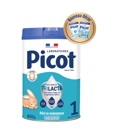 Le lait maternel est l’aliment idéal et naturel du nourrisson : il est le mieux adapté à ses besoins spécifiques. Une bonne alimentation de la mère est importante pour la préparation et la poursuite de l’allaitement au sein. L’allaitement mixte peut gêner l’allaitement maternel et il est difficile de revenir sur le choix de ne pas allaiter. En cas d’utilisation d’une préparation infantile, lorsque la mère ne peut pas ou ne veut pas allaiter, il importe de respecter scrupuleusement les indications de préparation et d’utilisation et de suivre l’avis du corps médical. Une utilisation incorrecte pourrait présenter un risque pour la santé de l’enfant. Les implications socio-économiques doivent être prises en considération dans le choix de la méthode d’allaitement. Picot a développé une gamme complète de laits infantiles adaptés aux besoins spécifiques de chaque étape de la vie de votre bébé. Grâce à 120 ans d'expertise et inspirés du lait maternel, les laboratoires Picot ont développé le système Trilacta, une combinaison unique de 3 ingrédients laitiers : crème de lait, protéines prolacta, lactose uniquement. Formule fabriquée en France et garantie sans huile de palme. Picot 1 convient en relais et/ou en complément de l’allaitement maternel. ...