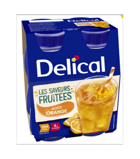 La marque Delical propose des compléments alimentaires nutritionnels indiqués en cas de dénutrition avérée ou en prévention d'un état de dénutrition.Delical Boisson Fruitée est une boisson aux fruits hypercaloriques à base de jus de fruit concentré, elle apporte 250 kcal et 8,4 g de protéines par portion de 200 ml. Facile à boire, cette boisson prête à l’emploi possède une saveur orange.Delical Boisson Fruitée est destiné à des fins médicales spéciales, dans les situations de dénutrition, d’inappétence ou de besoins accrus en calories. Préférées également en cas d’intolérance au lactose, de diarrhée ou de transit sensible, ainsi qu’en cas de déglutition douloureuse.Découvrez d’autres saveurs et textures de la gamme pour vous faire plaisir : crèmes desserts, cake, desserts aux fruits, boissons lactées saveurs café, nature, vanille etc… ...