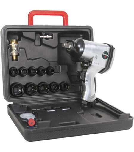 Cette clé à choc ½’ est un outil portatif pneumatique léger et maniable idéal pour les travaux de boulonnage/déboulonnage. Grâce à son corps en aluminium, à son faible encombrement et à son ergonomie , elle vous permettra de toujours travailler efficacement et sans fatigue . Équipée d’un régulateur de pression et délivrant un couple de 312 Nm , vous pourrez ajuster la vitesse de rotation jusqu’à 7000 tours / minute . Fonctionne avec une pression d’alimentation de 6.3 bar . Livrée en coffret avec 10 douilles ½’, 1 rallonge, 1 lubrificateur, 1 raccord rapide ¼’ et 1 burette d’huile. Consommation (L/min): 220 Couple de serrage (Nm): 312 Entrée d'air: 1/4" + connecteur rapide Pression d'utilisation (bar): 6,3 Type d'emballage: Mallette plastique Vitesse de rotation (tr/min): 7000 tr/min Accessoires: 10 Douilles 1/2" (9 à 27mm) et 1 rallonge 125mm Garantie 2 ans ...