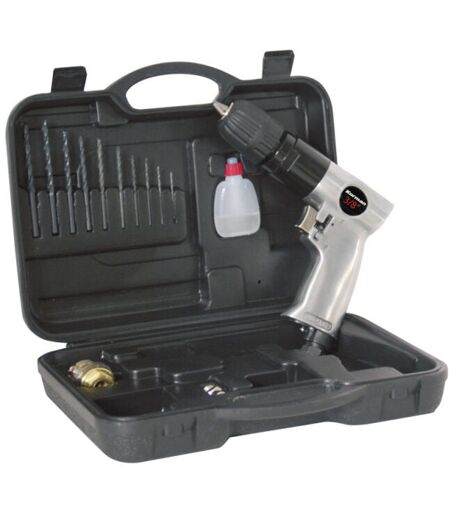 Cette perceuse est un outil portatif pneumatique léger et maniable idéal pour les travaux de perçage légers. Grâce à son corps en aluminium , à son faible encombrement et à son ergonomie, elle vous permettra de toujours travailler efficacement et sans fatigue . Par une simple pression sur la gâchette, vous pourrez ajuster la vitesse de rotation jusqu’à 1800 tours / minute . Fonctionne avec une pression d’alimentation de 6.3 bar. Livrée en coffret avec 10 forêts, 1 lubrificateur, 1 raccord rapide ¼’ et 1 burette d’huile. Consommation (L/min): 225 Entrée d'air: 1/4" + connecteur rapide Mandrin: 10mm Auto-serrant Pression d'utilisation (bar): 6,3 Type d'emballage: Mallette plastique Vitesse de rotation (tr/min): 1800 tr/min Accessoires: 10 Forets (1,5 à 6mm) Garantie: 2 ans ...