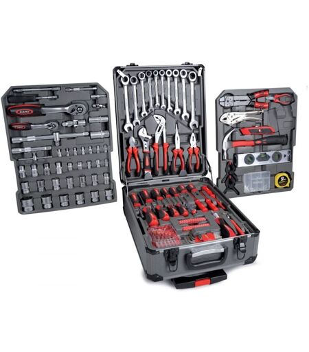 Destinée aux bricoleurs confirmés, cette valise en aluminium avec roulettes et poignée de transport intégrées, propose une sélection essentielle et utile de tournevis, douilles, clés et pinces, ainsi que de nombreux accessoires complémentaires. Composée majoritairement d'outils en acier au chrome-vanadium, elle vous garantira ainsi une qualité supérieure pour une résistance et une longévité accrues. Chaque outil disposant de son emplacement dédié dans son compartiment, vous resterez toujours plus efficace et organisé. Composition: - 10 clés mixtes à cliquet Cr-V - 1 pince bec long 200mm - 1 pince coupante 150mm - 1 pince multiprise 250mm - 1 pince universelle 150mm - 1 pince à cosses - 1 clé à molette 200mm - 1 cutter - 1 mètre ruban - 2 serre-joints - 1 niveau rectangulaire à bulles - 1 assortiment de 60 fixations - 1 marteau - 1 pince à étau 180mm - 1 pince coupante 125mm - 14 tournevis Cr-V - 1 tournevis testeur - 24 embouts de vissage Cr-V - 9 clés mâles hexagonales Cr-V - 6 ...