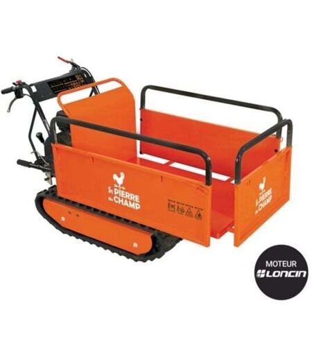 Cette brouette thermique, équipée d’un puissant moteur LONCIN de 196 cmᵌ développant 4.1KW , vous permettra de transporter des marchandises lourdes sur terrains difficiles . Sa capacité de charge de 500 kg et ses 3 vitesses en marche avant et 1 vitesse en marche arrière , vous permettront un transport tout terrain, sans effort. Equipée de chenilles en caoutchouc renforcé de haute qualité , elles vous garantiront une adhérence et une stabilité parfaite dans des conditions les plus difficiles. Et pour toujours bénéficier de plus de polyvalence, cette brouette type mini dumper est munie d’une benne en acier à haute résistance, extensible, avec ridelles amovibles , qui permet d’augmenter significativement la surface de chargement. Transmission robuste qui permet de changer de direction simplement et sans effort. Pour faciliter le basculement, la brouette motorisée est équipée d’un vérin à gaz qui viendra assister l’opérateur en soulageant le poids de la charge. Catégorie : Brouette à ...