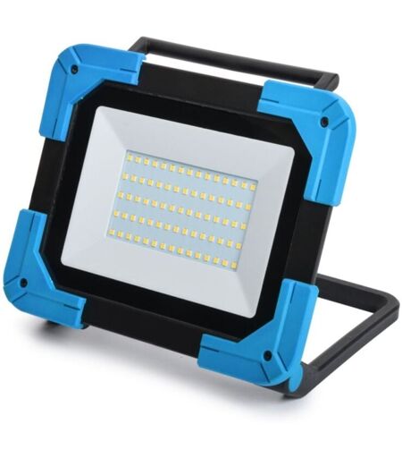Description générale Le projecteur LED de chantier 50W est un éclairage ultra puissant et économique, idéal pour travailler dans toutes les conditions. Sa structure en aluminium le rend rétractable, garantissant un faible encombrement. Utilisable aussi bien à l'intérieur qu'à l'extérieur, il est étanche (IP65) et offre une lumière blanche neutre grâce à la technologie LED SMD. Ce projecteur est livré avec un câble de 3m et une barre de montage pour trépied. Classe énergétique A+. Garantie de 2 ans. Spécifications techniques Angle d’éclairage : 120° Classe énergétique : A+ Couleur : Noir / Bleu Dimensions : 210x180x45 mm Durée de vie : L70 30 000 h Flux lumineux : 5000 lumens Indice de Protection : IP65 Matière principale : Aluminium Plage de température : De -20°C à +40°C Puissance : 50 W Rendement lumineux : 100 lm/W Température de couleur : Blanc neutre - 4000K Tension nominale : 230V~50Hz Type de LED : 75 Led SMD 2835 Équipement : Câble HO7RN-F 3G1mm² de 3m Garantie : 2 ans ...