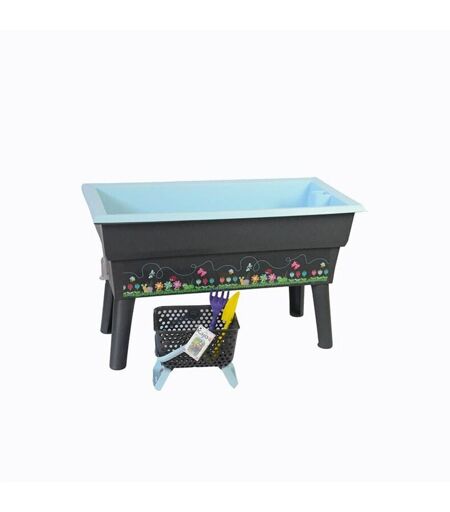 Calipso - Jardiniere mini junior 40L Gris/Bleu Pastel + 1 panier Kajo 4 l + 2 outils de jardin plastiques