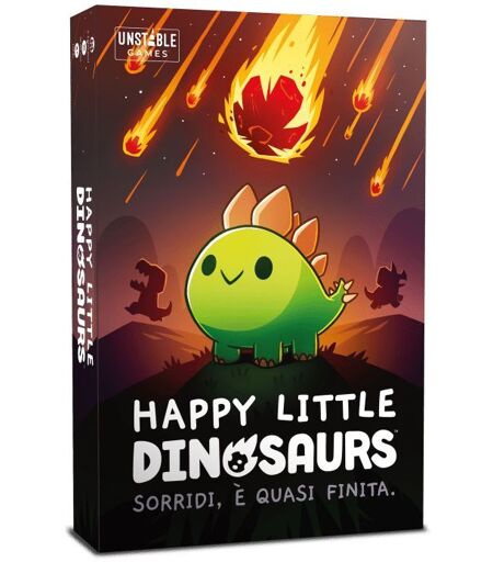 Un gioco di carte semplice e scorrevole con dinosauri pucciosissimi a cui non saprete sicuramente... Vi capita mai di sentirvi come dinosauri che cercano di evitare meteoriti cadenti? In questo gioco da 2 a 4 giocatori, dovrete cercare di schivare tutti i disastri Naturali, Predatori ed Emotivi della vita. Potreste cadere dentro una fossa di lava incandescente, venire attaccati da scoiattoli dai denti a sciabola, oppure essere bidonati dal vostro dino-appuntamento... ma chi riuscirà a sopravvivere a tutto questo vincerà la partita! Come si gioca: A ogni round, viene girata una carta Disastro e i giocatori giocheranno carte Punto dalle loro mani. Il punteggio viene calcolato partendo dal valore della carta Punto ma può aumentare o diminuire in base ai bonus o effetti di altre carte. Il giocatore con il punteggio minore ottiene la carta Disastro di quel round. Non appena si arriva a tre carte Disastro, tutte uguali o tutte diverse, nella propria area, si è eliminati dal gioco! Asmodee Happy Little Dinosaurs. Tipo di prodotto: Carta da gioco, Genere: Strategia, Età consigliata (min): 8 anno/iCaratteristicheDurata minima del gioco30 minDurata massima del gioco60 minNumero minimo di giocatori2Numero massimo di giocatori4Età suggeritaAdulti e bambiniTipo di prodottoCarta da giocoEtà consigliata (min)8 anno/iSupporto lingueITANumero di carte97 pzGenereStrategiaDati su imballaggioTipo di imballoScatolaContenuto dell'imballoRegole del gioco incluseSìTavolo da gioco inclusoSì ...