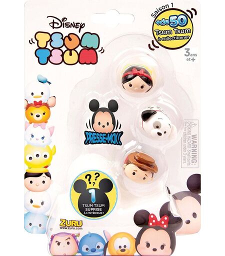 Vos personnages Disney préférés revisités sous forme de petites figurines ! Contenu du blister : - 4 figurines Tsum Tsum dont une figurine surprise La collection Tsum Tsum a transformé les différents personnages Disney, Mickey, Blanche-Neige, Winnie, Pinocchio et bien d'autres, en petites figurines à collectionner et à empiler ! Tsum-Tsum signifiant "empile-empile" en japonais, vous pourrez les superposer et créer une grande pyramide de figurines ! Collectionnez-les, il y a plus de 50 Tsum Tsum dans la saison 1 à combiner ! Note : Modèle aléatoire. Étant livrés à l'assortiment nous ne pouvons nous engager sur les personnages que vous recevrez. ...