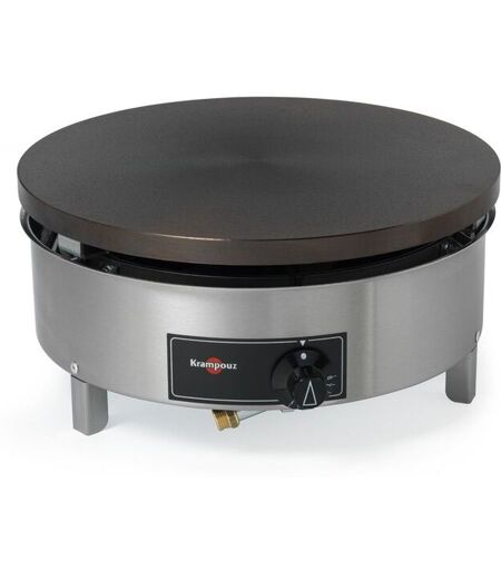 Crêpière gaz Fest Noz Ø 40 cm - Les plaques en fonte avec rebord et picots moulés sur la face inférieure (exclusivité Krampouz) ralentissent l'échappement de la chaleur des flammes et augmentent la surface d'échange thermique - Plaque en fonte d'acier usinée certifiée contact alimentaire - Chàssis en inox - Brûleur grand diamètre en étoile à 6 branches (construction robuste en acier) pour une diffusion idéale de la chaleur - Robinet de réglage - Témoin de chauffe - Pieds inox - Fourni avec une spatule en bois et un ràteau en bois - Alimentation gaz butane / propane - Puissance 6000 W - Fabriqué en France - Garantie 2 ans. ...