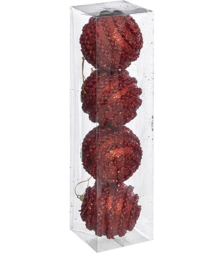 Déco de sapin Lot de 4 Boules de Noël D 8 cm Effet Maille - Rouge - Feeric Christmas (-) Dimensions : L. 8 x P. 8 x H. 8 cm - Matière: Polystyrène - (-) Modèle : Rouge ...