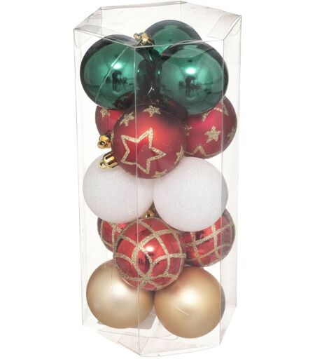Déco de sapin Lot de 15 Boules de Noël D 5 cm - Vert Rouge et Or - Feeric Christmas (-) Dimensions : D. 5 cm - 15 Boules assorties - Mix de boules lisses et décorées, mates ou brillantes - Matière: Polystyrène - (-) Modèle : Rouge ...