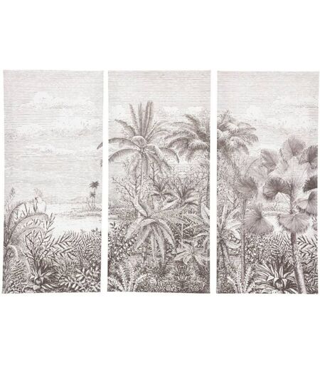 La toile imprimée "Ariel" Atmosphera s'invitera volontiers dans un intérieur au style rétro pour déposer une touche chaleureuse ! Une déco murale authentique La toile imprimée "Ariel" obéit à un format rectangulaire et des dimensions qui lui permettront de trouver sa place même dans de petits espaces. Dans un esprit colonial, elle représente un triptyque en noir et blanc qui déposera une touche vintage dans votre déco. Fixez votre toile imprimée "Ariel" au-dessus d'un buffet en bois et métal Atmosphera. Le petit plus déco Coordonnez votre toile imprimée à un pouf et des coussins reprenant le thème illustré. ...