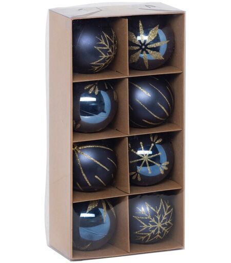 Atmosphera - Déco de sapin Lot de 8 Boules de Noël d 8 cm - Bleu et Doré - Feeric Christmas