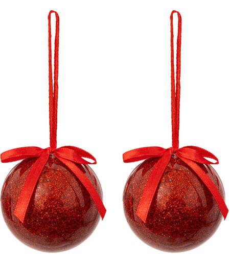 ATMOSPHERA Déco Sapin Lot de 2 Boules de Noël Rouge pailleté d 6 cm - Feeric Christmas