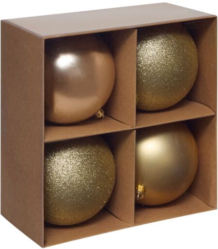 Déco de sapin Lot de 4 Boules de Noël GM D 10 cm - Or - Feeric Christmas (-) Dimensions : D. 10 cm - Lot de 4 Boules assorties (Brillante , Mate et Pailletée) - Matière: Polystyrène - (-) Modèle : Doré ...