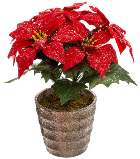 ATMOSPHERA Plante artificiel Poinsettia Étoile de Noël Rouge pailleté en pot h 22 cm - Feeric Christmas