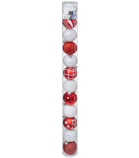 ATMOSPHERA Déco de sapin Lot de 12 Boules de Noël d 6 cm - Rouge et Blanc - Feeric Christmas