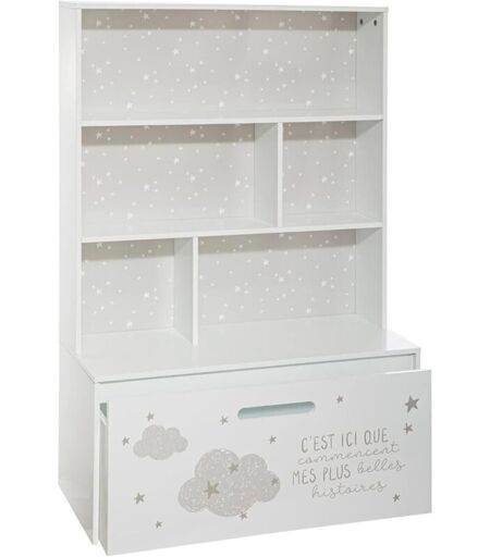 Description générale Ce produit est un meuble de rangement pour enfants, conçu pour organiser livres, jouets et fournitures dans la chambre de votre enfant. Il combine fonctionnalité et design minimaliste pour s'intégrer harmonieusement dans tout type de décoration. Spécifications techniques Matériau : MDF résistant aux rayures et durable Dimensions : Longueur 75 cm, Largeur 30 cm, Hauteur 113,5 cm Compatibilité et accessoires Convient pour ranger livres, jouets, peluches et cahiers Se marie avec d'autres meubles de la gamme pour une organisation optimale Installation Facile à assembler avec des instructions claires Installation stable pour assurer la sécurité des enfants Utilisation Idéal pour organiser la chambre d'enfant de manière pratique et esthétique Facilite l'accès aux jouets et livres pour les enfants Autres informations Design minimaliste avec un schéma de couleurs blanc et gris, adapté aussi bien pour les filles que pour les garçons Produit de la marque française ...