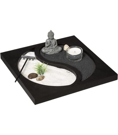 Décoration Zen de Jardin avec Figurine Bouddha Yin Yang sur Plateau, Bougie et Accessoires Atmosphera