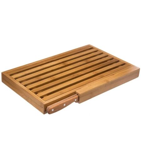 Secret De Gourmet - Planche à découper à pain en bambou 44x27cm avec rainures pour miettes et couteau inclus - Set 5five