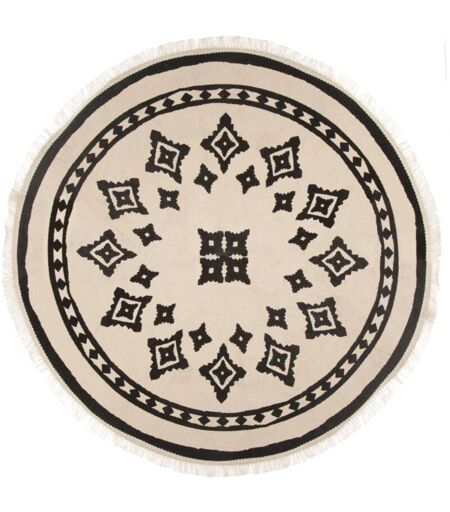 Atmosphera - Tapis Rond Frangé Ethnique Naturel en Fibres Naturelles, Diamètre 90 cm