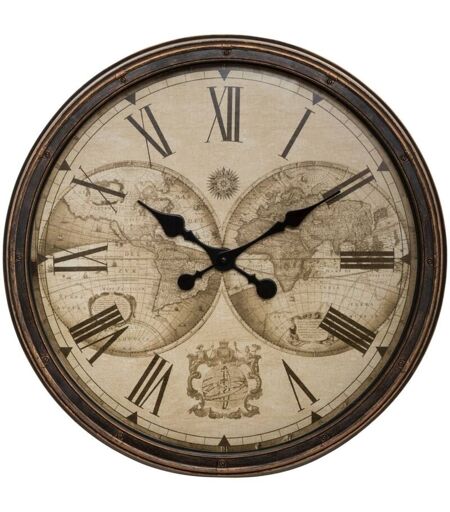 L'horloge monde "Tomy" Atmosphera est l'élément qu'il vous faut pour satisfaire vos envies d'évasion. Un design aux allures d'antan Avec son cadre effet vieilli, cette horloge semble tout droit sortie du passé. Vous serez séduit par la mappemonde ancienne qui décore le fond ainsi que par la silhouette harmonieuse des aiguilles. L'horloge monde "Tomy" est l'accessoire idéal pour apporter une touche d'authenticité à un bureau ou une pièce à vivre. Une pendule pratique Pour l'accrocher, il vous suffit de la suspendre à un crochet mural. Son diamètre assez large vous permettra de lire l'heure facilement tout en profitant du calme de son mécanisme silencieux. Pour une décoration rétro, installez l'horloge au-dessus d'une commode Atmosphera façon chiffonnier ancien. Le petit plus déco Si vous aimez le style industriel, ajoutez des objets en métal pour un joli mélange des genres : luminaires, cache-pots ou décoration murale, à vous de choisir ! ...