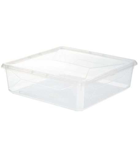 Description générale La boîte en plastique transparente 'simply+' de 6,2 litres est idéale pour le rangement. Sa conception simple et fonctionnelle permet une visibilité facile du contenu, tout en s'intégrant parfaitement à tout espace de vie. Spécifications techniques Couleur : Transparent Matière principale : Polypropylène Longueur : 30.00 cm Largeur : 30.00 cm Hauteur : 9.50 cm Poids : 0.28 kg Compatibilité et accessoires Cette boîte est compatible avec divers systèmes de rangement et peut être utilisée avec d'autres produits de la gamme 'simply+'. Installation Pas d'installation requise. Il suffit de la placer à l'endroit désiré. Utilisation Idéale pour le rangement de divers objets tels que des jouets, des vêtements ou des fournitures de bureau. ...