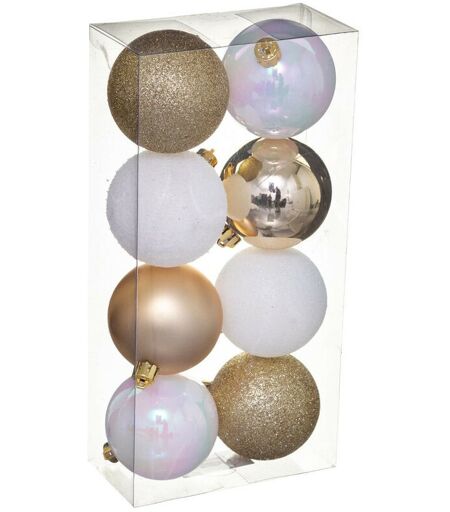 ATMOSPHERA Déco de sapin Lot de 8 Boules de Noël d 7 cm - Or et Blanc - Feeric Christmas