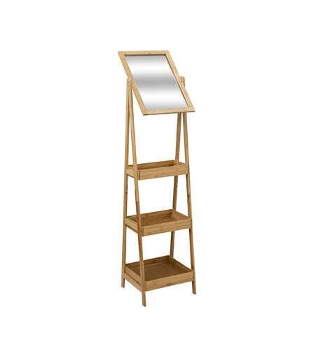 Etagère 3 niveaux avec miroir, 39 x 40 x 160 cm. Disposez vos produits ou vêtements comme vous le souhaitez grâce à ce meuble avec 3 niveaux. Sa forme biseautée donnera une touche design à votre intérieur. Ce meuble de rangement dispose d'un miroir inclinable. Le rangement est en bambou et en MDF. A monter soi-même. . Couleur : Beige. Matière: Bois. Hauteur : 160 cm. Longueur : 39 cm. Largeur : 40 cm. Type de bois : Bambou ...