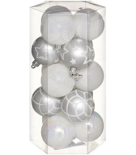 ATMOSPHERA Déco de sapin Lot de 15 Boules de Noël d 5 cm - Blanc et Argent - Feeric Christmas