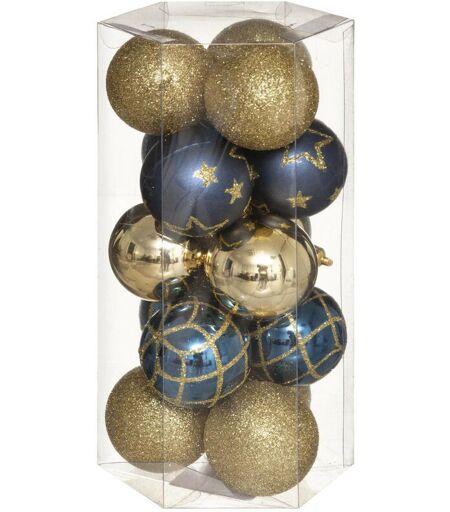 Déco de sapin Lot de 15 Boules de Noël D 5 cm - Or et Bleu - Feeric Christmas (-) Dimensions : D. 5 cm - 15 Boules assorties - Mix de boules lisses et décorées, mates ou brillantes - Matière: Polystyrène - (-) Modèle : Bleu or ...