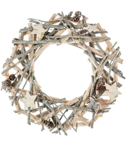 Couronne de Noël en Bois avec Branches et Déco terre sauvage - Feeric Christmas (-) Dimensions : D. 30 x P. 5,5 cm - Matière : Bois - (-) Modèle : Marron ...