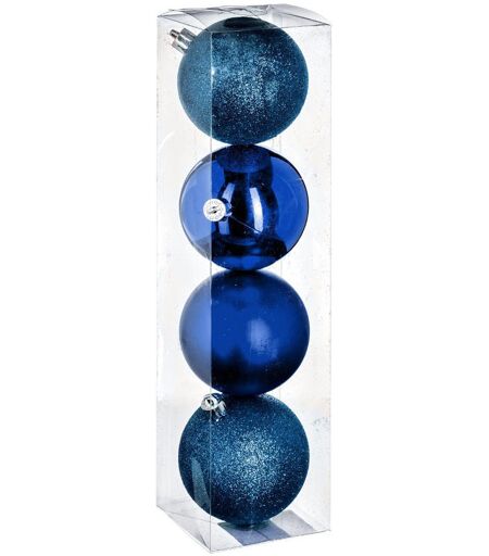 Déco de sapin Lot de 4 Boules de Noël D 8 cm - Bleu nuit - Feeric Christmas (-) Dimensions : D. 8 cm - 4 Boules assorties - Mix de boules lisses ou pailletées , mates ou brillantes - Matière: Polystyrène - (-) Modèle : Marine ...