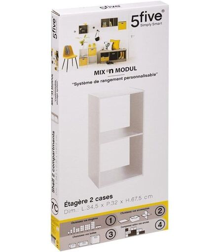Atmosphera Etagère 2 Cases Mix - P. 34,5 Cm X H. 67,5 Cm - Blanc