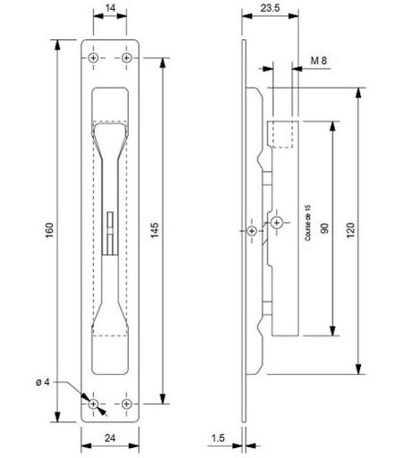 Description générale Verrou à levier à encastrer conçu pour les portes métalliques. Ce modèle compact offre une finition en acier zingué, garantissant durabilité et résistance. Spécifications techniques Dimensions : 160 x 24 mm A encastrer : 120 x 23.5 mm Course : 15 mm Épaisseur : 1.5 mm Compatibilité et accessoires Compatible avec les portes métalliques. Aucun accessoire supplémentaire nécessaire pour l'installation. Installation Installation simple et rapide, à encastrer dans la porte métallique selon les dimensions indiquées. Utilisation Idéal pour sécuriser les portes métalliques, ce verrou à levier est facile à utiliser et offre une protection efficace. ...