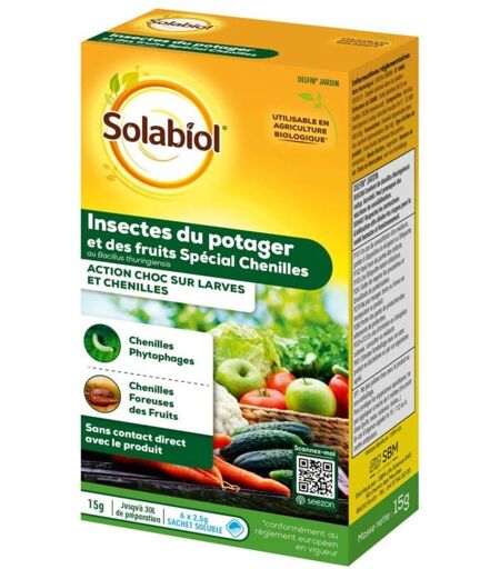 SOLABIOL Traitement Insectes du Potager et des Fruits - Bacillus thuringiensis - Efficace contre les Larves et Chenilles
