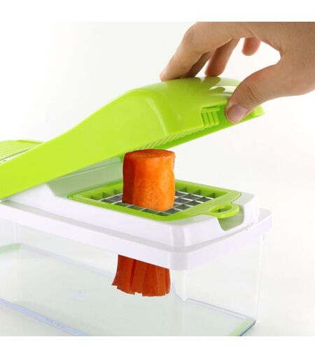 Coupez, tranchez, râpez, émincez et pressez en toute sécurité avec cette mandoline multifonction composée d'un bac de récupération et d'un large choix de 7 accessoires ! Votre créativité sera sans limite grâce à cet indispensable de la cuisine qui vous accompagnera dans la réalisation de toutes vos recettes. ...