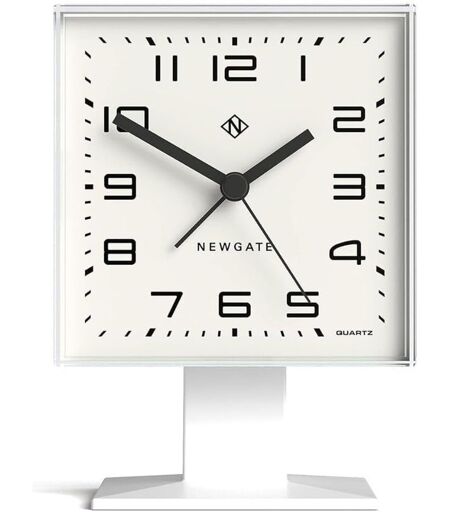 Newgate® Victor Réveil Design Cube Carré Blanc Idéal Pour Chevet, Bureau Ou Étagère Accessoire Rétro Pour Chambre À Coucher Et Bureau