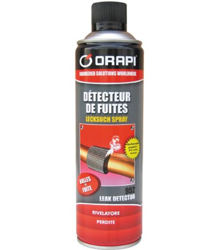 Leak Detector ORAPI – Détection instantanée des fuites de gazDétecteur de toutes fuites gazeuses.AVANTAGESConforme aux recommandations EIGA / ICG doc78/08/EProduit exempt d'ammoniacL'absence d'ammoniac permet de réduire les risques sur les alliages à base de cuivreLe produit est sur base aqueuse, le résidu possède une température d'auto inflammation > 100°C.Le produit ne contient pas d'halogénureLe produit n'est pas corrosifLe produit n'est pas dangereux pour l'environnementConforme à la norme NF EN 14291MODE D'EMPLOIVaporiser sur l'endroit à examiner, la détection de la fuite est caractérisée par une formation de bulles à l'endroit précis de la fuite.DOMAINE D'APPLICATIONTuyauteries, robinets, raccords, vannes, canalisations, soupapes.Systèmes d'alimentation des véhicules à gaz.Installations d'air comprimé, manomètres des bouteilles de gaz, installations frigorifiques.Leak Detector ne contenant pas d'huiles minérales, est compatible avec tous les gaz y compris l'oxygène. 1x Détecteur ...