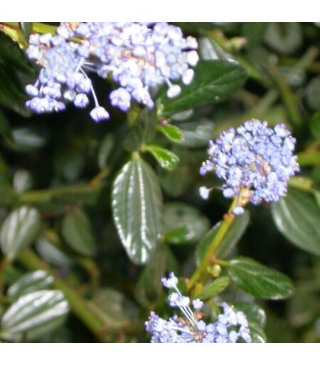 Le Céanothe thyrsiflorus var. repens : Un couvre-sol fleuri et parfumé Description générale Le Céanothe thyrsiflorus var. repens, également connu sous le nom de Lilas de Californie rampant, est un arbuste tapissant originaire d'Amérique du Nord. Il se distingue par son port bas et étalé, ses branches arquées et son feuillage persistant vert foncé. Cette variété peut atteindre une hauteur de 0,6 à 1 mètre et s'étaler sur 2 à 3 mètres de largeur, formant un tapis dense et fleuri. Feuillage Les feuilles du Céanothe thyrsiflorus var. repens sont ovales, pointues et mesurent environ 4 cm de long. Elles présentent un revers blanchâtre et une texture légèrement coriace. Le feuillage persistant de cet arbuste apporte une touche de verdure décorative toute l'année. Floraison La floraison du Céanothe thyrsiflorus var. repens est un véritable spectacle printanier. Au printemps, de fin mai à fin juin, l'arbuste se pare d'une multitude de petites fleurs bleu ciel regroupées en panicules de 3 à 8 ...