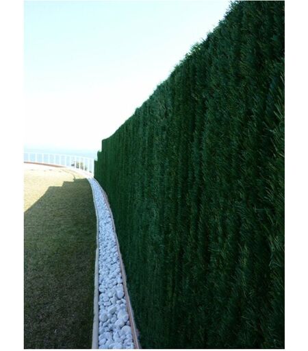 Haie artificielle de 126 brins au m² qui habillera votre extérieur sans entretien. Adaptable aussi bien en déco extérieure ou intérieure, elles pourront servir de séparateur de terrasse et balcon, clôture... elle ne prend pas le vent et est traitée anti feu et anti-UV . Pour s'adapter à toutes vos surfaces, elle est facilement retaillable et ne risque pas de s'abîmer lors de la coupe Grâce à son occultation à 95% , elle sera idéale pour pour se camoufler des regards indiscrets. Facilité de pose Caractéristiques : Dimensions : 1m , 1m20, 1m50, 1m80 et 2m x 3 m Composition : PVC de grade A et 100% vierge (non recyclé) Coloris : 2 tons de vert (moyen et foncé) Finitions : PVC, anti feu, traité anti UV : garanti 2 ans Densité : 1650 g/m² +/- 43 brins au mètre carré Attaches : fil de fer galvanisé Vendu en rouleau de 3 m ...