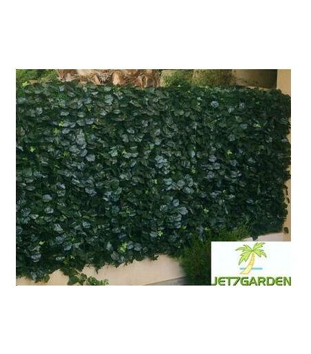HAIE ARTIFICIELLE Feuillages DUO SIMPLE FACE - Support : Grille Plastique semi-souple - Feuillage Lierre : Tissus Polyester Enduit - 3 Feuilles Différentes - Couleur : Vert Foncé+Vert Tendre (Couleur Dominante Vert foncé) - Traité Anti départ de Feu - Traité Anti UV : 9000 Heures - * Non Retaillable - Poids : 2,80 Kg - Conditionnement : Boite Carton recyclable - Usage : Occultation, Décoration Outdoor/Indoor clôtures, séparation de balcon/terrasse..... *La haie de feuillage sur la photo est installée sur un grillage où il y a déjà une haie existante, ce qui confère à cette haie une plus forte occultation. ...