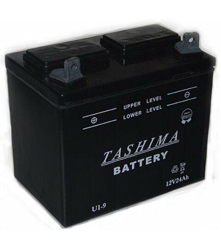 Batterie Borne positive à gauche Longueur : 195 mm Largeur : 130 mm Hauteur : 185 mm Références : U1L9, U1-L9, U1L-9 Marque : TASHIMA Volts : 12 Ampères : 24 Capacité en électrolyte : 2,4 Litres Bornes type : 3 Batterie livrée sans électrolyte Précautions pour le remplissage de la batterie Enlever la bande adhésive de protection donnant accès au bouchon de remplissage. Ne pas enlever les bouchons de remplissage trop tôt avant de remplir votre batterie à l'aide d'électrolyte. Remplissage de l'électrolyte Remplir la batterie avec de l'électrolyte d'une densité de 1,28. Remplir jusqu'au niveau supérieur comme indiqué sur la batterie . L'électrolyte ne doit pas être à une température supérieure à 30°C lors du remplissage. Laisser la batterie verticalement pendant une demi-heure après le remplissage de celle-ci. Le niveau d'électrolyte peut baisser durant cette opération, dans ce cas, il faut en remettre de manière à ce que le niveau supérieur de la batterie soit à nouveau atteint. Charge ...
