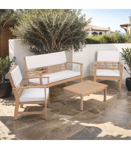 Beau Rivage - Salon de jardin 4 places en bois d'acacia naturel et beige