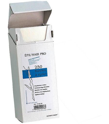 Toile non tissée, s'utilise avec de la cire chaude. 250 pièces en distributeur, 20 x 7,5 cm. ...